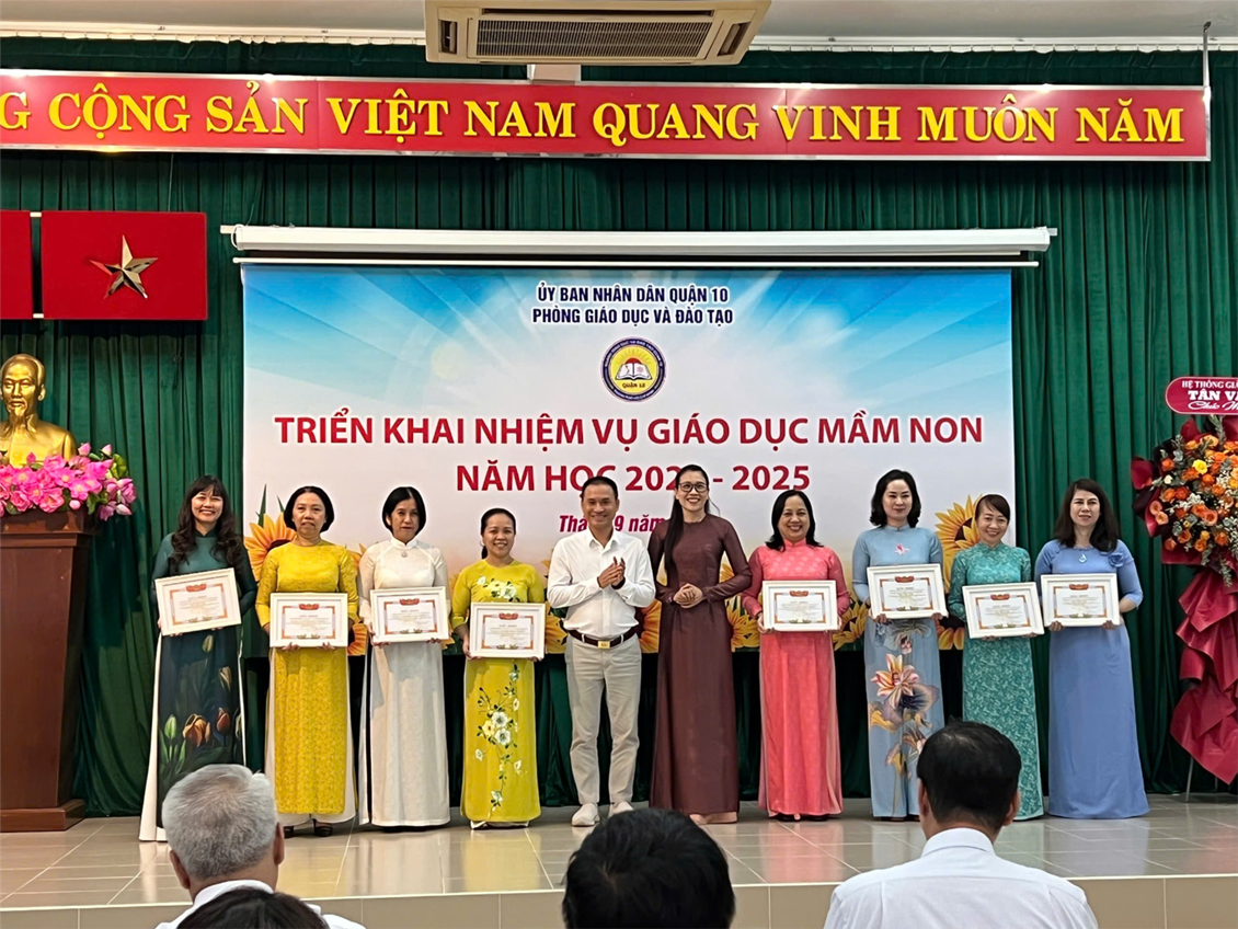 khen tặng tập thể trường Mầm non Phường 10 đã thực hiện tốt công tác xây dựng trường mầm non đạt kiểm định chất lượng